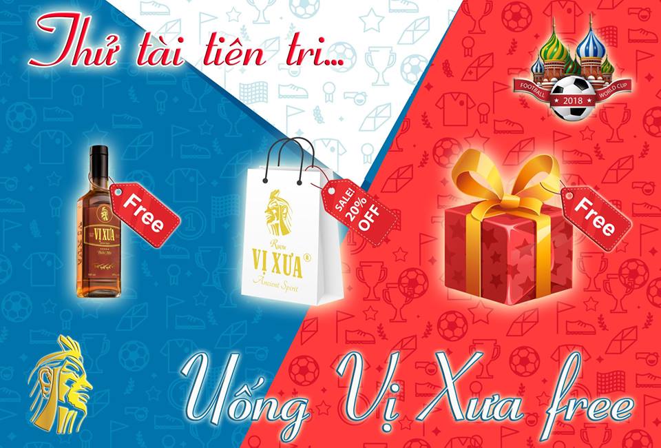 - Giải thưởng: nick Facebook nào có dự đoán đúng tỉ số trận đấu & không vi phạm Thể lệ sẽ được: tặng 1 chai Vị Xưa 5 sao miễn phí + quà tặng + free ship nội thành Sài Gòn + giảm giá 20% cho đơn hàng đầu tiên.
